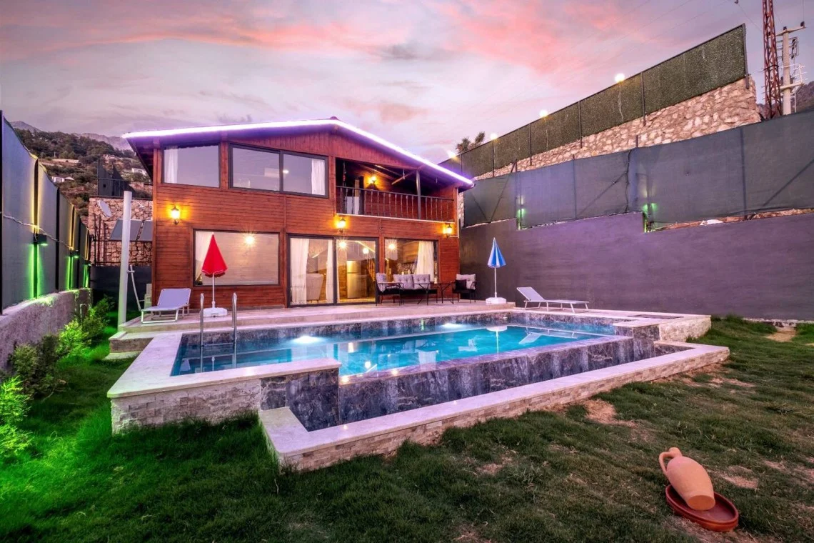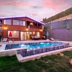Şezlong .salıncak ,yemek masası, mangal ve otopark bulunmaktadır…Ayrıca villamız Balayı çiftleri için çok uygundur…